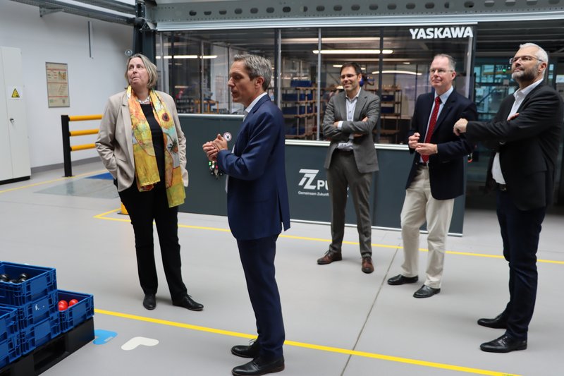 Hochschulpräsidentin Wirtz zeigte sich beeindruckt von den Erfolgen des TZ PULS in Forschung, Transfer und Lehre. Sie dankte allen Beteiligten herzlichst für den intensiven Austausch und betonte, wie wichtig es ihr sei, das TZ PULS ausführlich kennenzulernen. Besonders die Führung durch die Lern- und Musterfabrik hatte es der Präsidentin angetan: “Es war sehr spannend, alles mit eigenen Augen zu sehen und dank der detaillierten Erläuterungen, die Zusammenhänge zu verstehen“. Außerdem lobte sie die enge Zusammenarbeit des TZ PULS mit Partnern aus der Praxis, und zwar sowohl in Forschung und Entwicklung als auch in der Lehre. Der Transfer in die Anwendung sei ein Herzensthema von Wirtz. „Die zahlreichen Innovationen und Kooperationspartner des TZ PULS belegen, wie gut dieser hier funktioniert“. Sie freue sich schon sehr auf die weitere Zusammenarbeit und sei gespannt, welche weiteren Ideen und Kooperationen in den nächsten Jahren gemeinsam auf den Weg gebracht werden könnten.