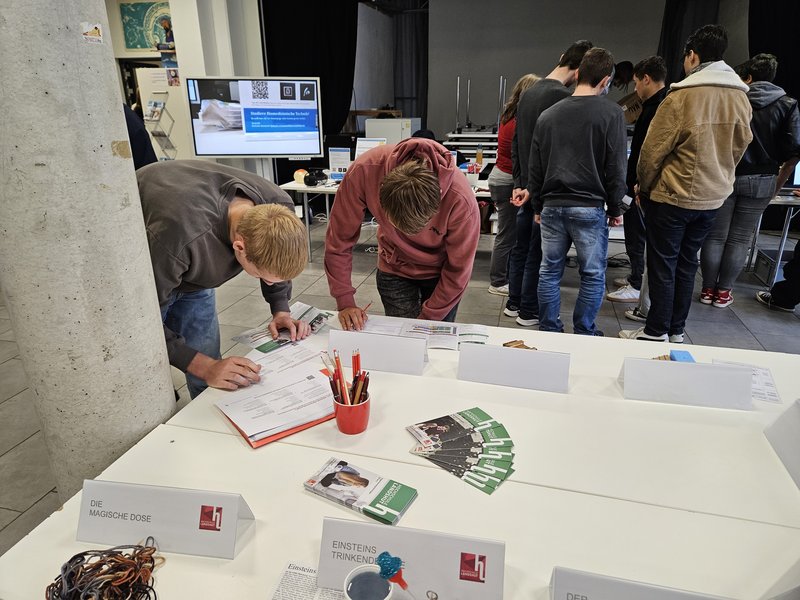 Foto 5: Physikalische Rätsel und ein Quiz bringen den Schülerinnen und Schülern die Studiengänge Ingenieurpädagogik und Ingenieurpsychologie näher.
