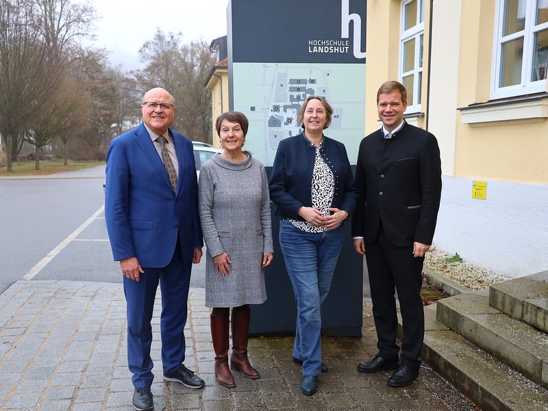 Im Bild (v. l.): Stadtrat Ludwig Zellner und Ursula Weger vom Freundeskreis der Hochschule Landshut, Prof. Michaela Wirtz, Präsidentin der Hochschule Landshut, und Bezirkstagspräsident Dr. Olaf Heinrich