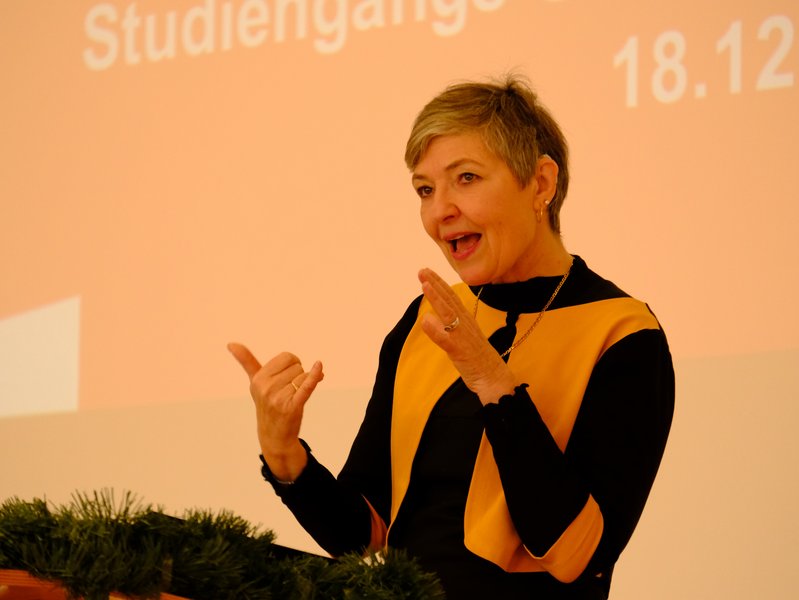Foto 2: Die Hochschulpräsidentin Prof. Dr. Michaela Wirtz würdigte den Studiengang als profilbildendes Element der Hochschule Landshut.
