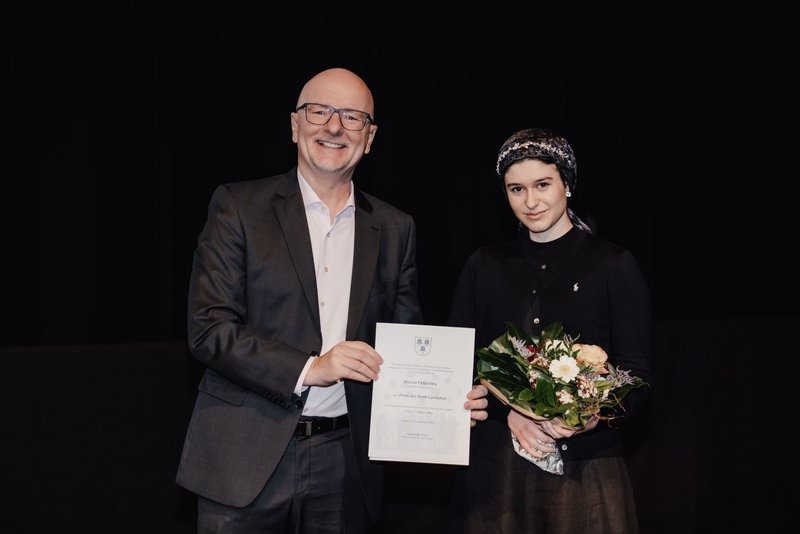 Bild 5: Die Absolventin mit dem besten Bachelorabschluss: Fatbardha Morina zusammen mit Alexander Putz, Oberbürgermeister der Stadt Landshut
