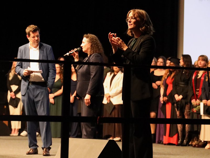 Bild 2: Hochschulpräsidentin Prof. Dr. Michaela Wirtz gratuliert den Absolventinnen und Absolventen: „Sie haben die Weichen für Ihre Zukunft erfolgreich gestellt.“