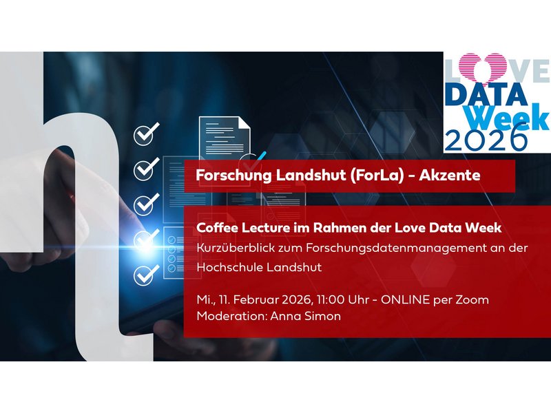 Um die Relevanz von Forschungsdatenmanagement hervorzuheben, lädt auch die Hochschule Landshut im Rahmen der Love Data Week zu einer internen Informationsveranstaltung in Form einer Coffee Lecture. Am 11. Februar von 11:00 – 11:30 Uhr können sich interessierte Mitglieder der Hochschule online zu den Themen Forschungsdatenmanagement, Datenmanagementplan sowie über den Begriff der FAIRen Forschungsdaten informieren. Darüber hinaus werden konkrete Tools vorgestellt wie der Research Data Management Organiser (RDMO) zur Erstellung von Datenmanagementplänen.