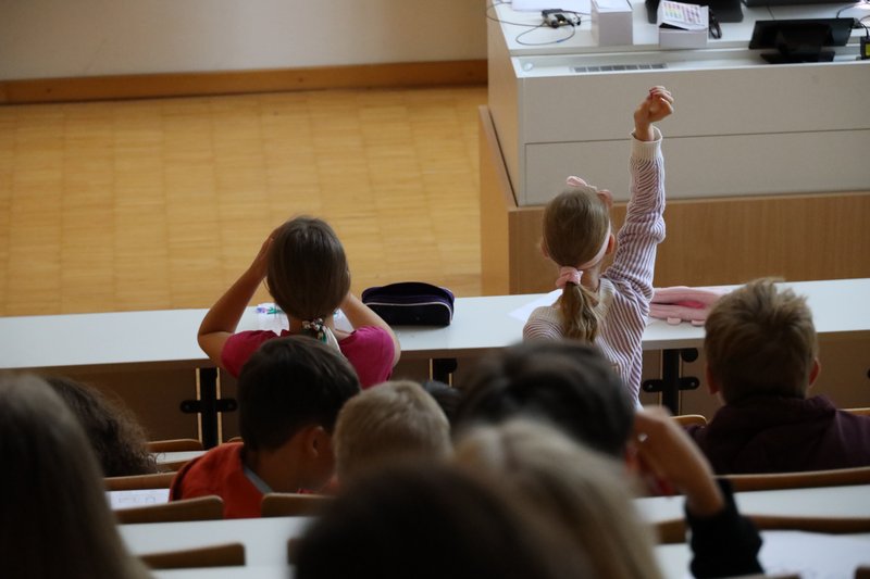 Unter dem Motto „Den Geheimnissen von Wissenschaft und Technik auf der Spur“ starteten die rund 40 Teilnehmenden mit einer interaktiven Schnuppervorlesung. Johanna Felber, Studentin der Fakultät Interdisziplinäre Studien, führte die Kinder mit viel Engagement und anschaulichen Beispielen in die Welt der Mathematik ein.