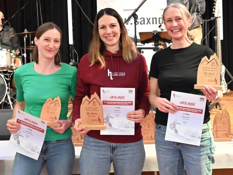 Auch die Hochschule Landshut war sportlich stark vertreten: Über 30 Athletinnen und Athleten gingen in den verschiedenen Disziplinen an den Start. Eine Spitzenleistung zeigte einmal mehr Katja Rau, die mit einem sensationellen Rennen bereits zum dritten Mal hintereinander im Ski Alpin der Damen (AK 1) souverän den Sieg holte. Kanzler Johann Rist erreichte im Ski Alpin der Herren (AK 2) den dritten Platz und gewann damit zugleich die Kanzlerwertung. Erfolgreich waren auch die „Landshuter Stocknarrischen“ mit Florian Hartl, Linda Klingler, Van Ha Nguyen, Fabian Past und Martin Stemberger, die sich im Eistockschießen den dritten Platz sicherten. Nur denkbar knapp am Podest vorbei schrammte Johanna Nagl mit einem starken vierten Platz im Biathlon.