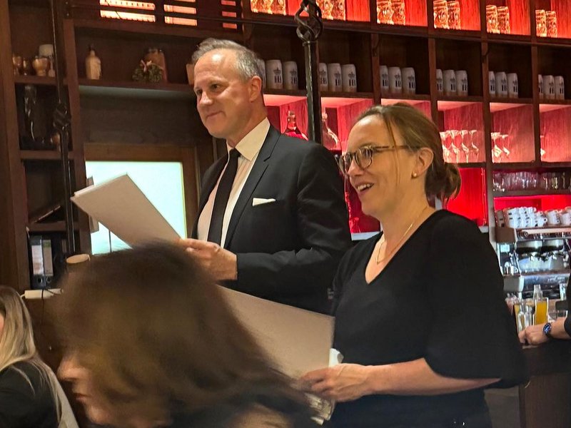 Bild 3: Prof. Dr. Bernd Mühlfriedel und Prof. Dr. Sandra Gronover beim festlichen Abschlussabend in der Burgschänke Landshut.
