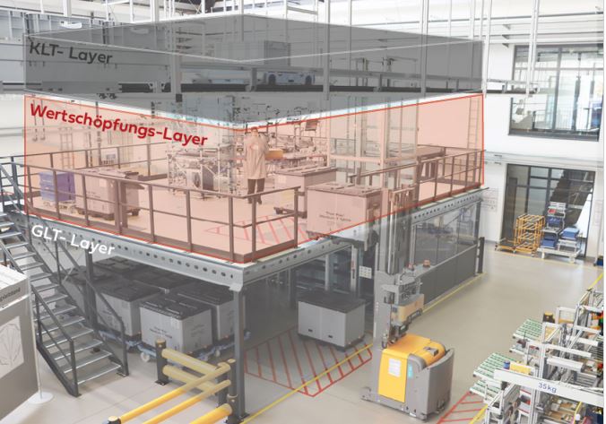 Im Fokus der Bewerbung stand mit SML ein revolutionäres Konzept, das Produktions- und Logistikprozesse intelligent übereinanderschichtet und damit bis zu 60 % Fläche einspart. In Zeiten von Flächenknappheit, Energiekrise und Fachkräftemangel bietet sich so eine praxisnahe, wirtschaftlich umsetzbare Antwort auf viele zentrale Herausforderungen produzierender Unternehmen.