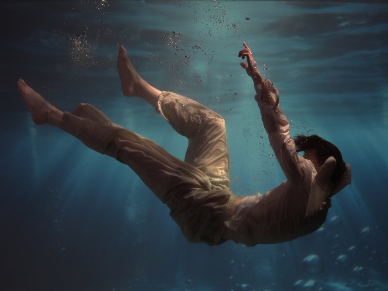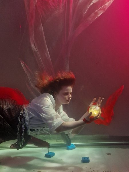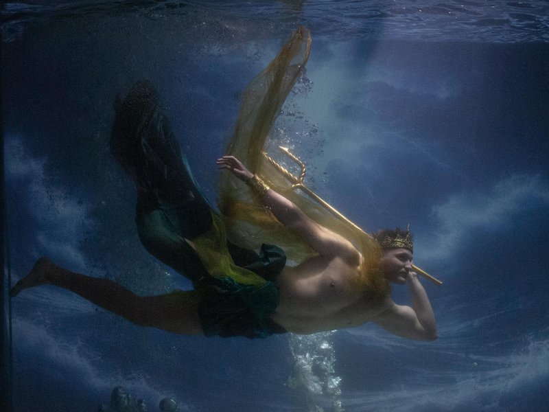 „Die Bildidee – das Storytelling – steht bei diesem Modul im Mittelpunkt“, erklärt Jerrentrup. Ziel für die Studierenden war daher, bildstarke Geschichten zu entwickeln, die sich im Medium Wasser besonders eindrucksvoll inszenieren lassen. Diese reichen von poetischen Motiven der schönen, verführerischen und tödlichen Sirene bis hin zu einem Spiel mit dem Skurrilen, beispielsweise bei der Darstellung eines Büromenschen, der noch zur Arbeit kommt, auch wenn die Welt untergegangen ist. In Photoshop erhielten die Aufnahmen schließlich ihren finalen Feinschliff.