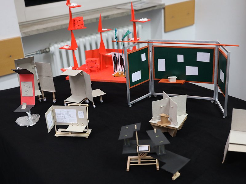 Bild 7: Die Werke, Entwürfe und Modelle der Studierenden zeigen, wie die Räume der ehemaligen Realschule Teil der Lehre geworden