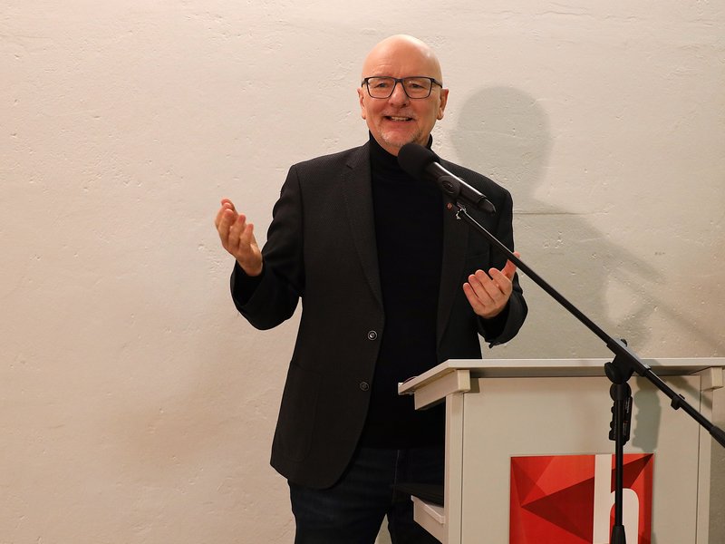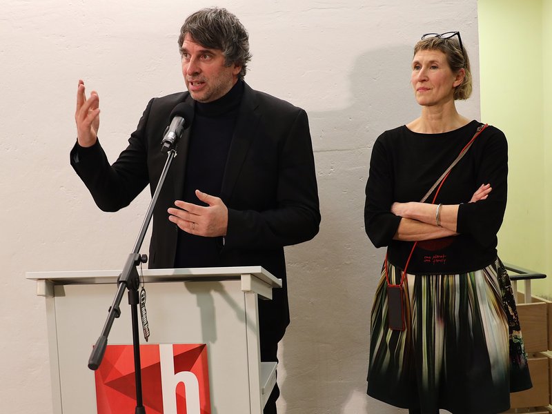 Bild 2: Prof. Stephan Rauch und Prof. Veronika Kammerer bei der Begrüßung der Gäste.