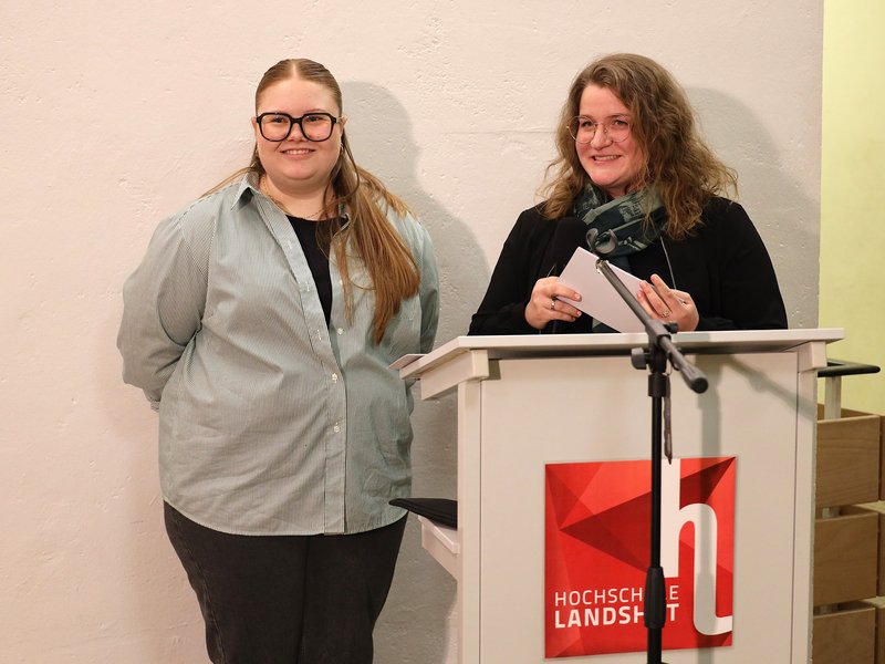 Bild 5: Antonia Seidl (links) und Katharina Reseneder sprachen im Namen der 24 Studierenden der ersten Kohorte des ersten Architekturstudiengangs in Niederbayern.
