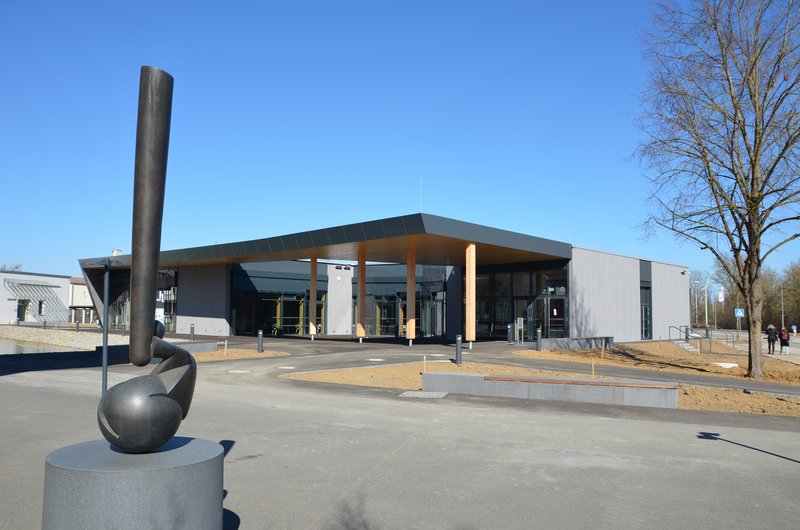 The publicly-used areas of the building face in a south westerly direction towards the pond and the campus area. The extensive transparency of the glazed facades means that the surrounding landscape flows right up to the roof. Two different patios give people the opportunity to sit outside.