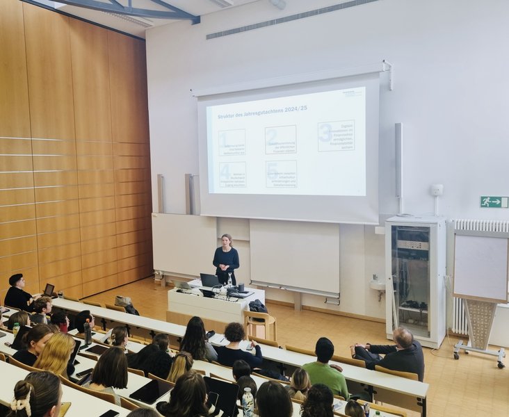 On December 18, 2024, an exciting guest lecture on the annual report of the German Council of Economic Experts took place at the Faculty of Business Administration. The lecture attracted numerous interested students, both from the first semester and from higher semesters. They listened intently to Dr. Veronika Püschel, who presented the contents of the annual report in a clear and informative way.