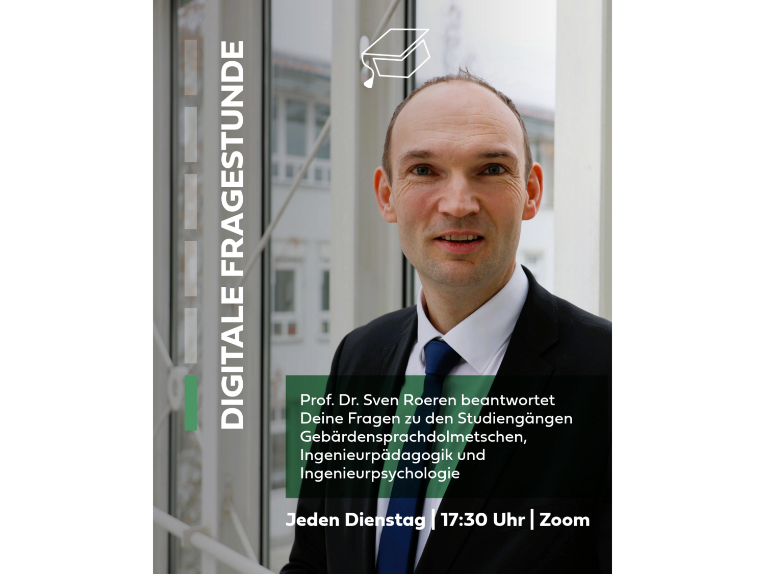 Dann informieren Sie sich in der Zoom-Fragestunde von unserem Dekan Prof. Dr. Sven Roeren - ab 21. April jeden Dienstag um 17:30 Uhr!
