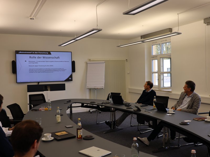 Zu Beginn des Treffens stand persönliches Kennenlernen in lockerer Atmosphäre auf dem Programm. Danach bot der Leiter des Promotionskollegs, Privatdozent Dr. Elmar Buchner von der Hochschule Neu-Ulm, mit einem interessanten Vortrag zum Thema „Mainstream in der Forschung“ eine Grundlage für kritische Diskussionen. Wissenschaft sei nicht demokratisch, so Elmar Buchner, denn sie ist frei und wird nicht von Mehrheiten bestimmt. Gleichzeitig braucht Wissenschaft neben Freiheit auch Einschränkungen durch zum Beispiel ethische Aspekte. „Das Wissenschaftssystem ist sicher nicht perfekt, aber es ist das beste System, das wir derzeit haben“ ergänzte Prof. Dr. Holger Timinger, Mitglied des Promotionskollegs an der Hochschule Landshut, und mit diesem System heißt es nun umzugehen. In diesem Spannungsfeld wissenschaftlich relevante Forschung zu betreiben ist die große Herausforderung der Promovierenden für die nächsten Jahre. Kontakte, die sie jetzt und in Zukunft knüpfen, werden sie dabei unterstützen.