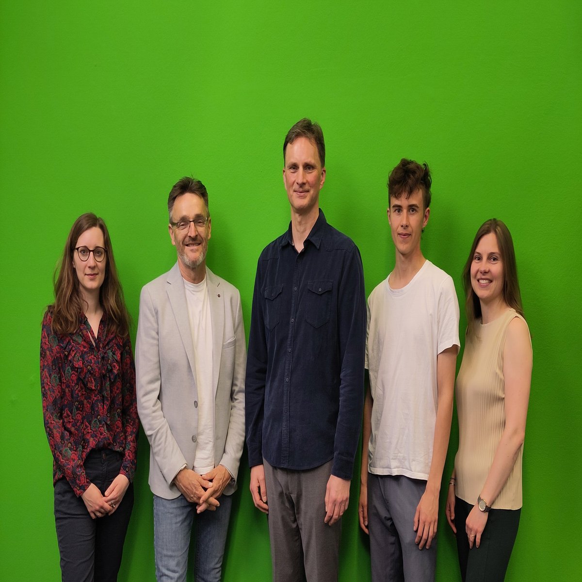 Bild 1: Team beim Projektstart im April 2026 (v. l. n. r.): Lea Antony, Prof. Dr. Ralf Ludwig, Prof. Dr. Markus Schmitt, Theo Binder, Luisa Horstmann.