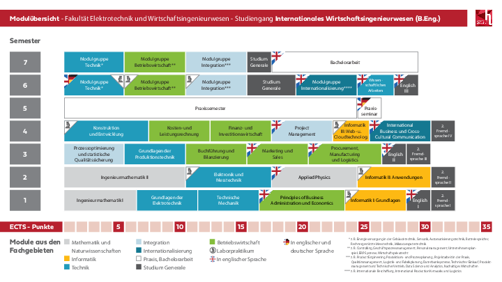 - Modulgruppe „Internationalisierung“: Internationale Beschaffung, Internationale Produktionsnetzwerke und Logistik