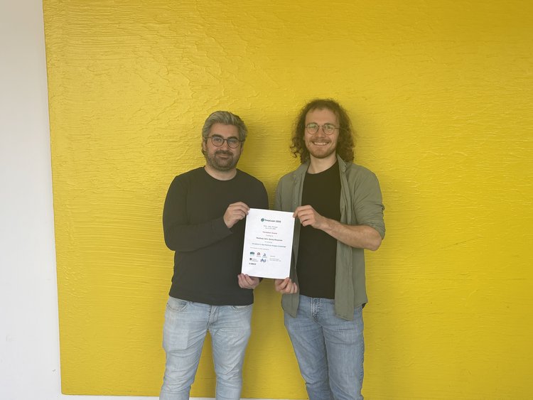 Matthias Jahn und Serouj Khajarian, Dokoranden im Forschungsschwerpunkt Medizintechnik, nahmen im Juli 2025 an der DeepLearn Summer School in Porto teil. Beim begleitenden Hackathon wurde ihr Projekt zur Klassifizierung von Partikel-Bildern mit dem ersten Platz der Hackathon-Challenge ausgezeichnet. Herzlichen Glückwunsch!
