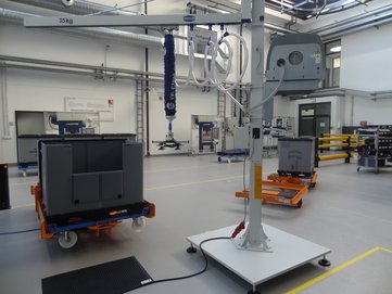 Schwere Gegenstände können mit dem Vakuumheber der Firma Schmalz ergonomisch angehoben und an anderer Stelle platziert werden. Einfaches und schnelles Handling mit dem Vakuumhubarm.