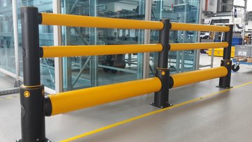 Die A-Safe Schutzbarrieren aus Polymeren sorgen für Sicherheit im Logistikverkehr. Indem sich die Schutzbarrieren beim Zusammenstoß verformen und anschließend wieder in ihren ursprünglichen Zustand zurückkehren, werden Schäden am Routenzug und an der Barriere verhindert.