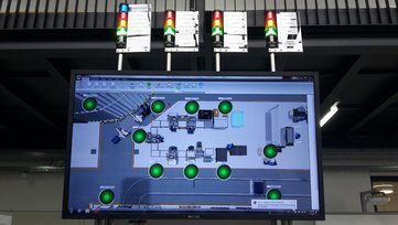 Werma`s Signalleuchten zeigen den jeweiligen Zustand eines Arbeitsplatzes an. Auf einem Bildschirm im Leitstand kann somit die Produktion in Echtzeit überwacht werden. Somit wird ein sofortiges Einschreiten bei Störungen ermöglicht.